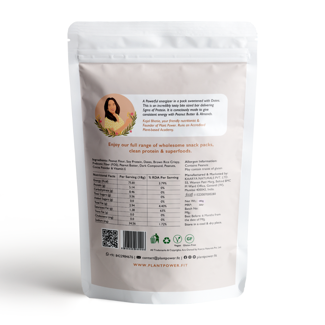 Each bite of our Choco Peanut Butter Protein Bites contains 5 grams of plant protein, making them a convenient and nutritious source of this essential nutrient. Packed with protein from peanut flour and soy protein, our protein bites support muscle growth and development. Protein plays a vital role in building and repairing tissues, including muscles, which is crucial for physical strength and overall health.