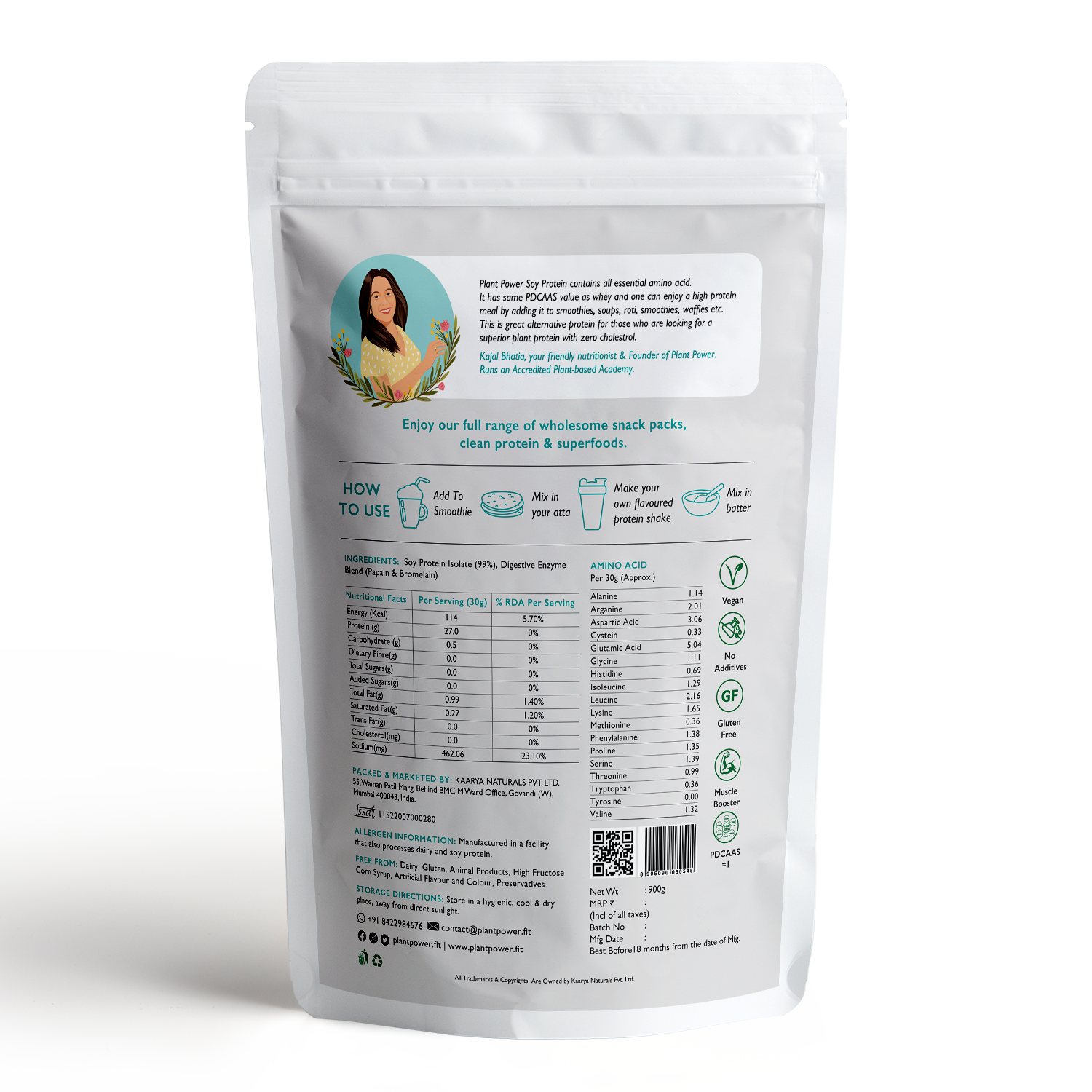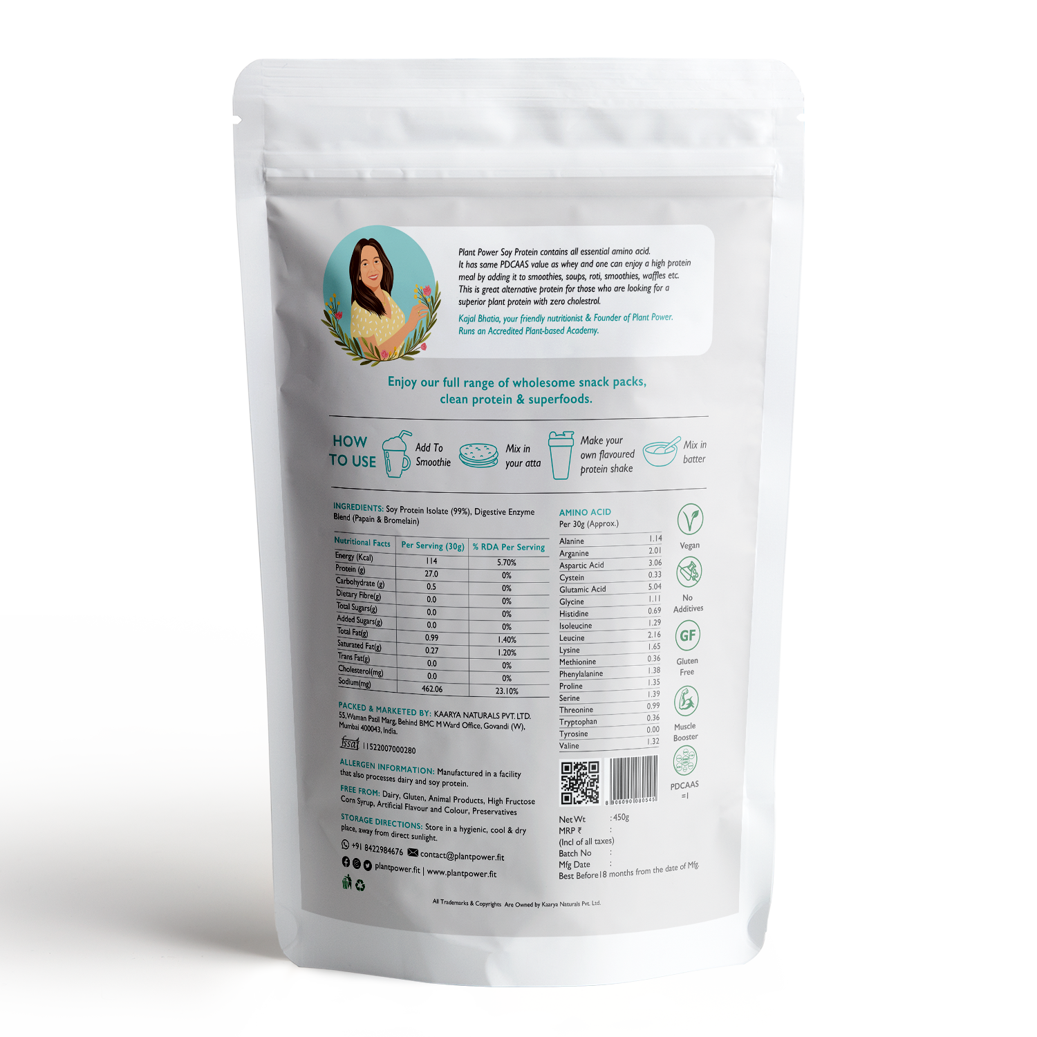 Experience the nutritional excellence of Plant Power Soy Protein - a complete plant-based protein source containing all essential amino acids, comparable to whey protein. Elevate your meals with this powerhouse protein, perfect for crafting high-protein smoothies, enriching soups, enhancing roti, and delighting in delectable waffles.