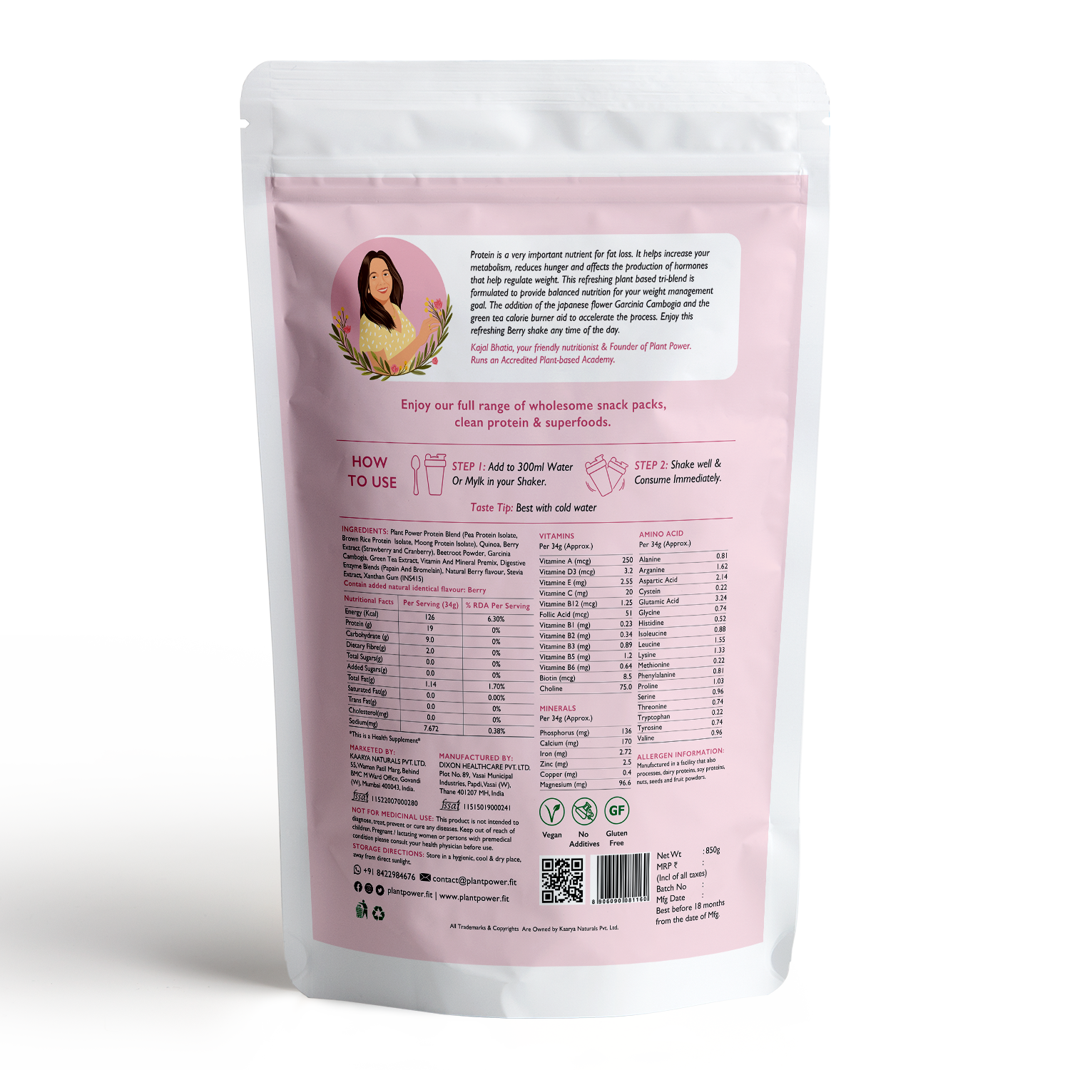 Berry Slim Protein Shake | Blend of Moong, Brown Rice, Pea | Easy Digestion | 19G Per Scoop