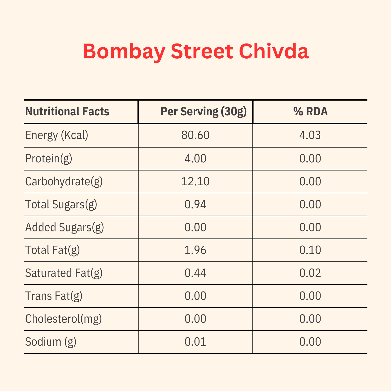 With twice the protein and half the fat as traditional Indian chivda, it's the ultimate guilt-free snack option for you and your family. Indulge in the peri-peri flavour inspired straight from the streets of this bustling city.